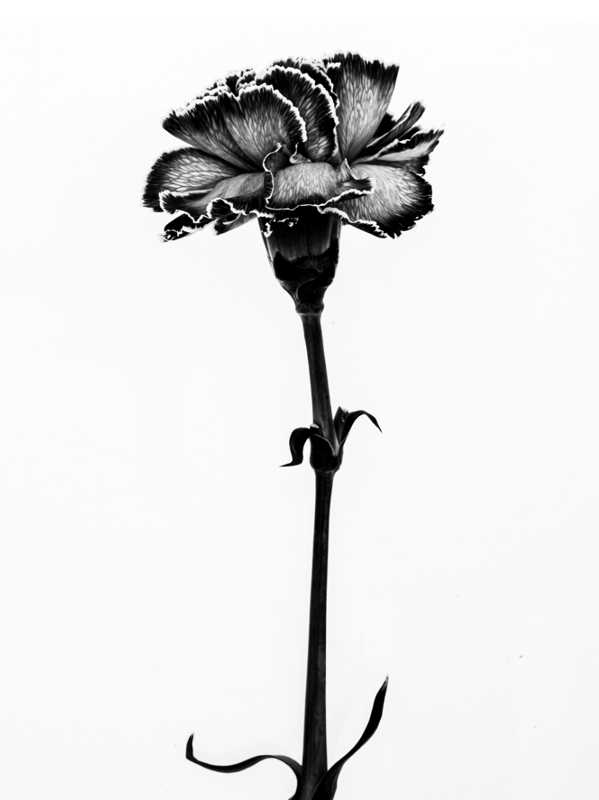Très vite, le noir et blanc s’est imposé. En ôtant la couleur – premier élément auquel on associe la fleur – elle voulait contraindre le regard à dépasser l’évidence. Une fleur, ce n’est pas seulement sa couleur : c’est avant tout une structure, une matière, un dessin naturel fascinant. Le noir et blanc permet de mettre en avant ses formes et ses textures, parfois jusqu’à troubler la perception : est-ce vraiment une fleur, ou une structure abstraite ? Elle aime cette part de déstabilisation, qui amène à regarder autrement.